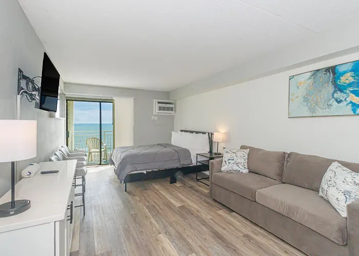 Nestled a 25-minute walk from the Mt. Atlanticus Minotaur Golf, the beachfront Beautiful Oceanfront Queen Suite-Recently Updated! Sea Mist 20407 Myrtle Beach villa entices guests to explore various tourist destinations nearby.